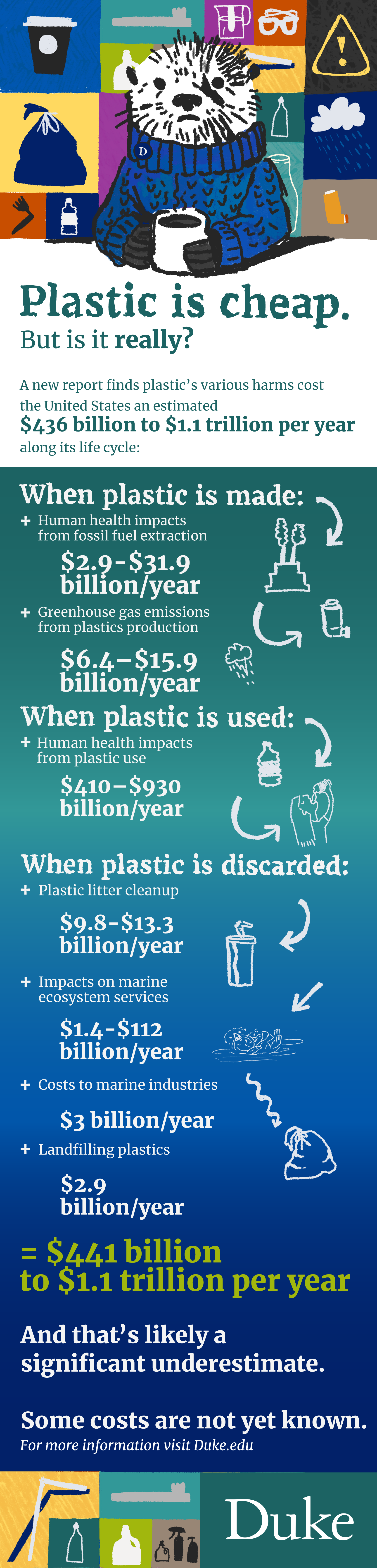 Duke researchers banded together to come out with a report that explains the true cost of plastic. It is filled with a lot of numbers. A team of communicators was assembled to put together an infographic that aimed to explain and make people care about some complex research.